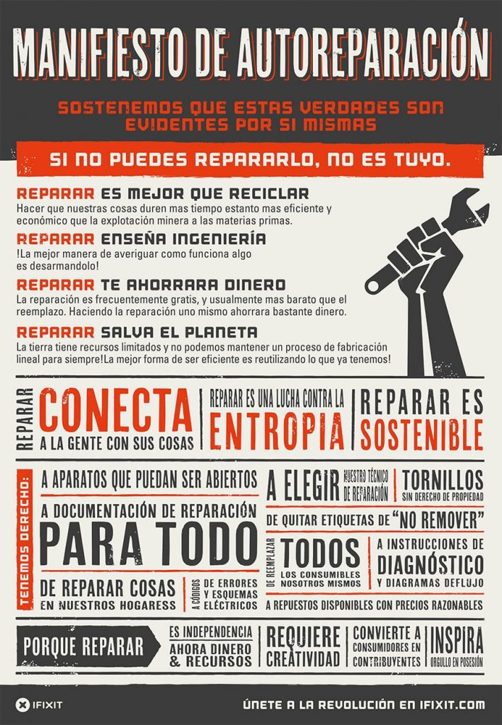 Reparar es una de las cinco erres de la ecología (reutilizar, reducir, reparar, reciclar y regular) pero ¿qué tanto la ponemos en práctica? ¿conocemos el impacto positivo que puede tener en el medio ambiente la reparación de nuestros objetos?. Sucede que muy rara vez un fabricante se encarga de completar el ciclo de vida de un aparato una vez que su funcionalidad se acaba.