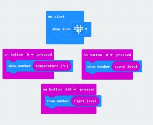 Link: https://makecode.microbit.org/_D2kEXgW1zD7J