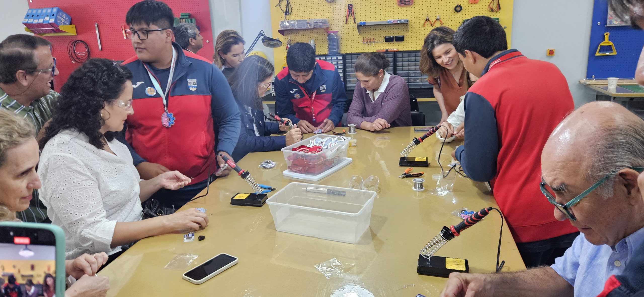 Los invitados a la inauguración tuvieron también la oportunidad de vivir una experiencia Maker al soldar un circuito impreso funcional, acercándose de primera mano a la propuesta educativa que impulsa la experimentación y el aprendizaje a través de la práctica.