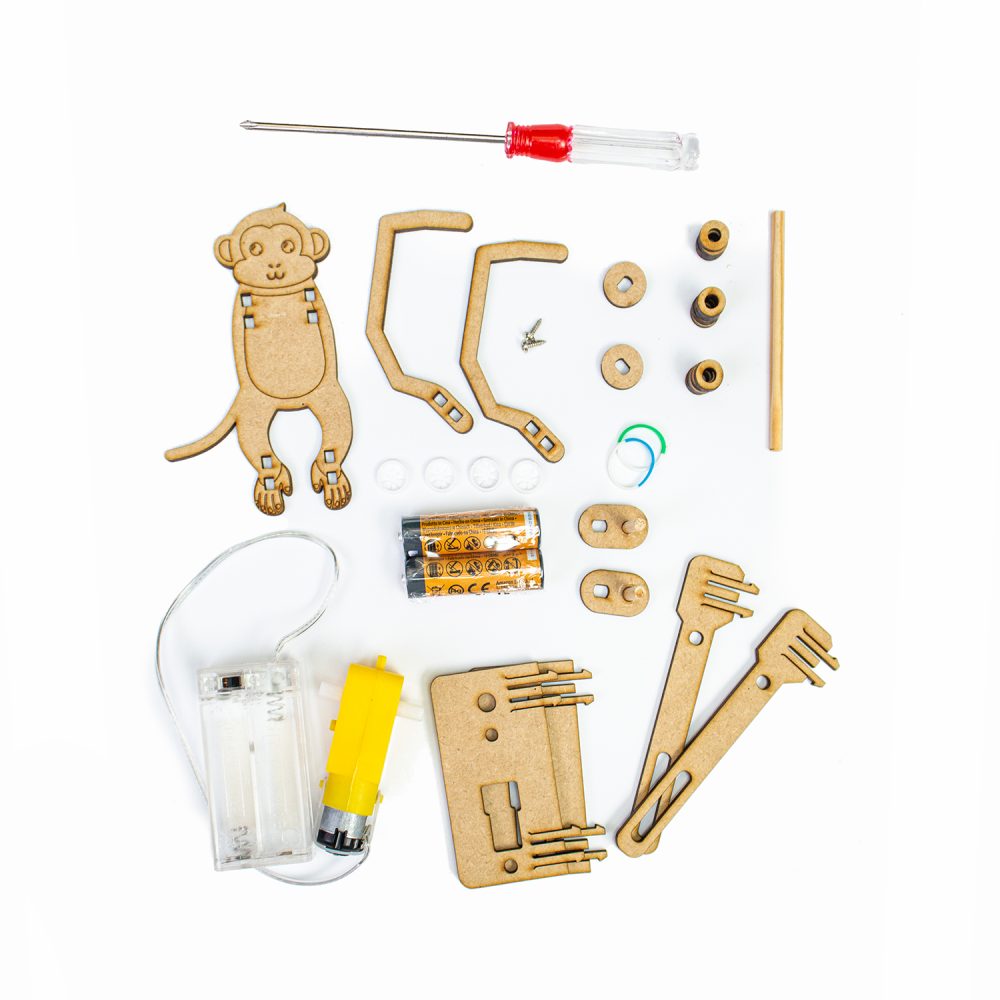 Este simpático changuito está fabricado en MDF cortado con precisión y cuenta con un pequeño motor que le permite trepar automáticamente por un lazo o cuerda. Solo colócalo, enciéndelo y observa cómo cobra vida mientras sube como todo un experto.