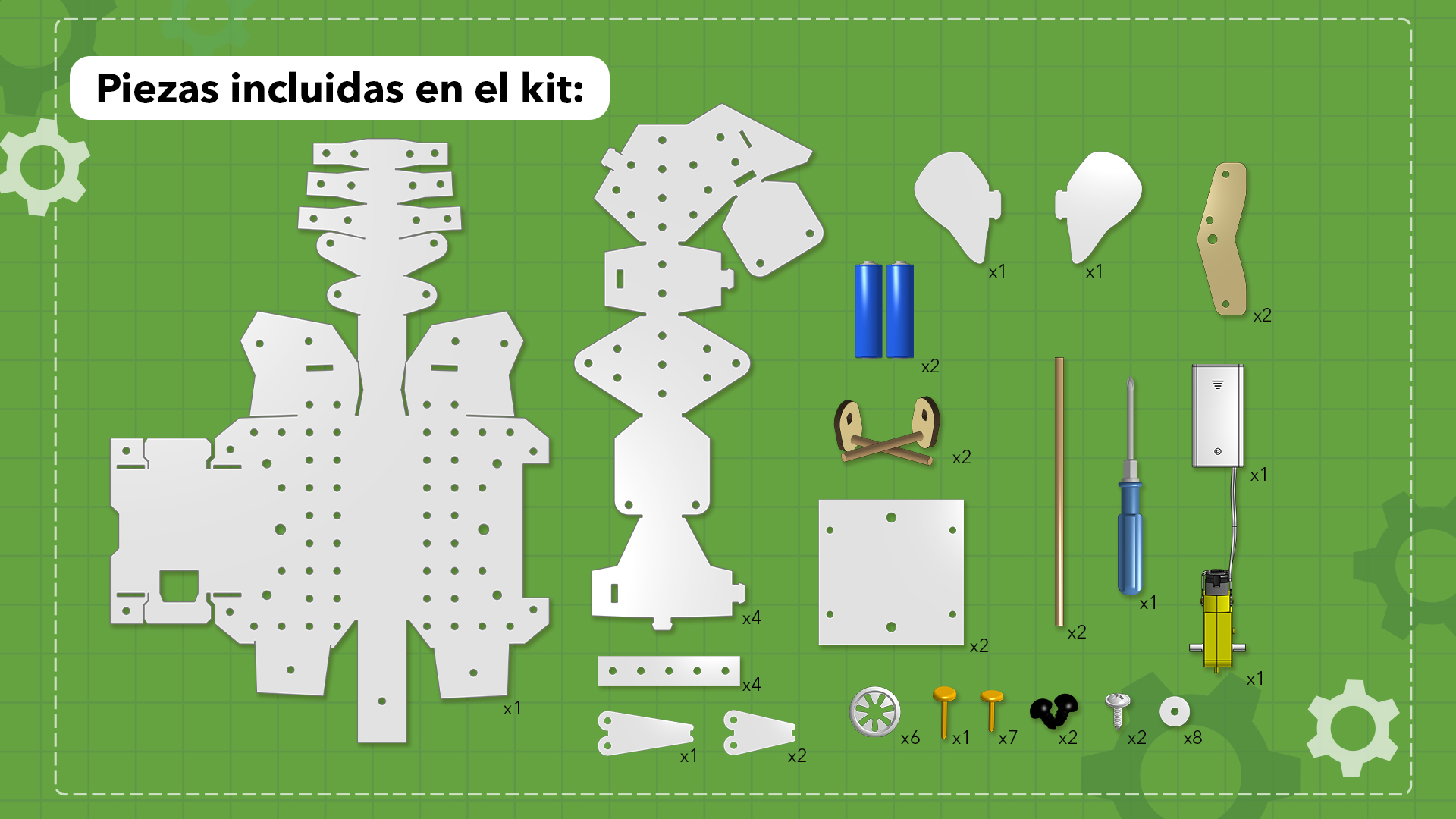 Piezas incluidas en el Kit Maker-STEAM de construcción Robolution® Electrofante: