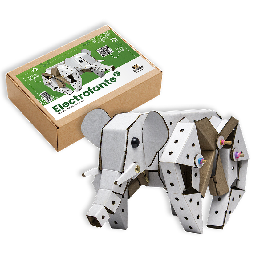 Diviértete armando al Electrofante con el práctico Kit Maker-STEAM de construcción Robolution® Electrofante, y pon en marcha a este adorable personaje. Robolution es un innovador sistema de construcción creativa a base de cartón que está revolucionando el mundo del diseño y la educación, combinando diversión, creatividad y aprendizaje en cada proyecto.
