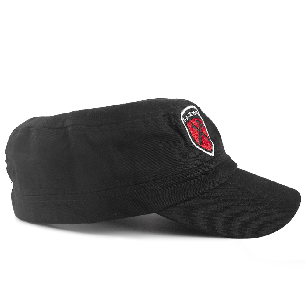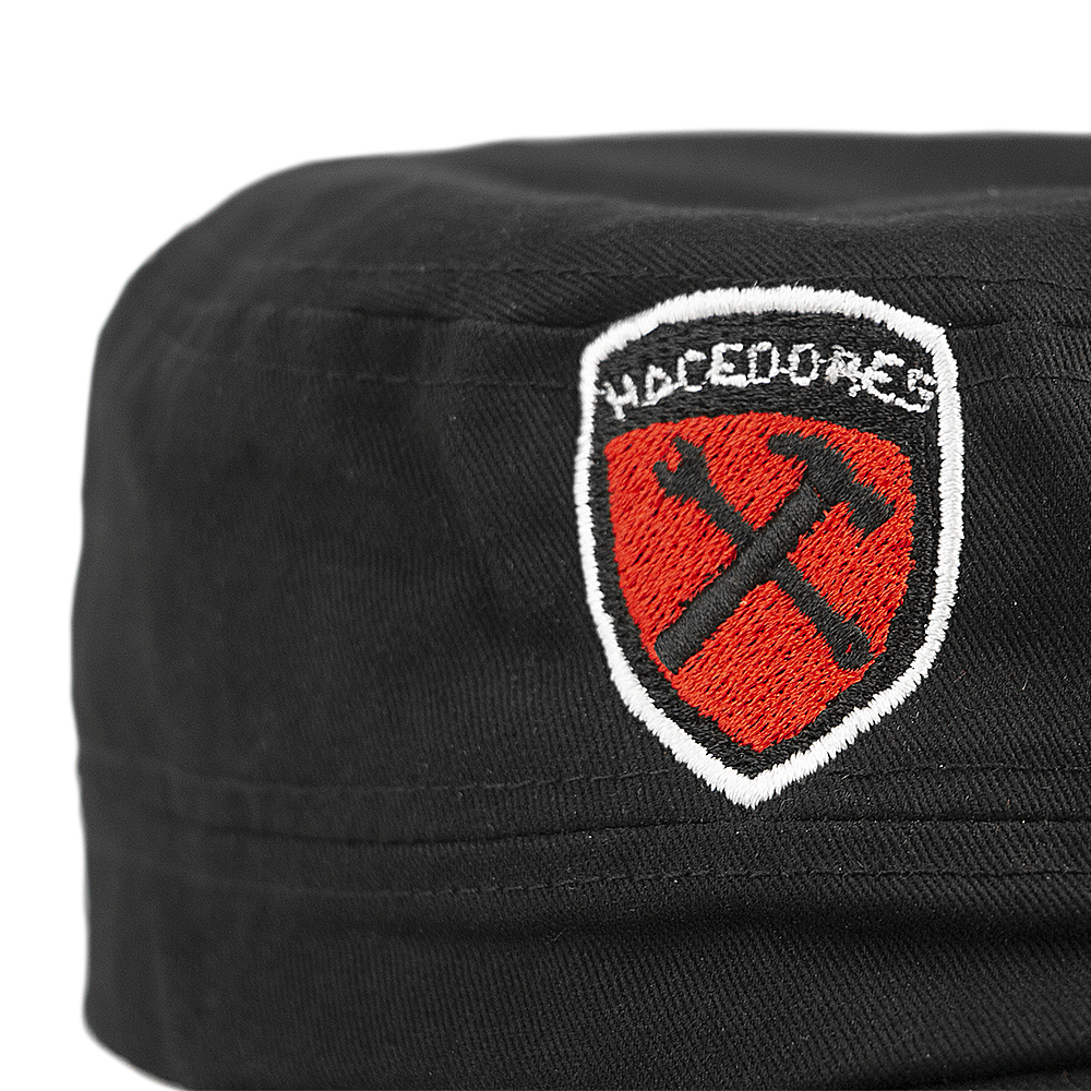 Gorra tipo militar, confeccionada en tejido de algodón compacto 100%. Parte superior plana, unitalla con banda de ajuste, visera semicurvada. Gran diseño unisex para hombres y mujeres. Excelente calidad y construcción detallada. Estampado bordado frontal derecho con el escudo de Hacedores.
