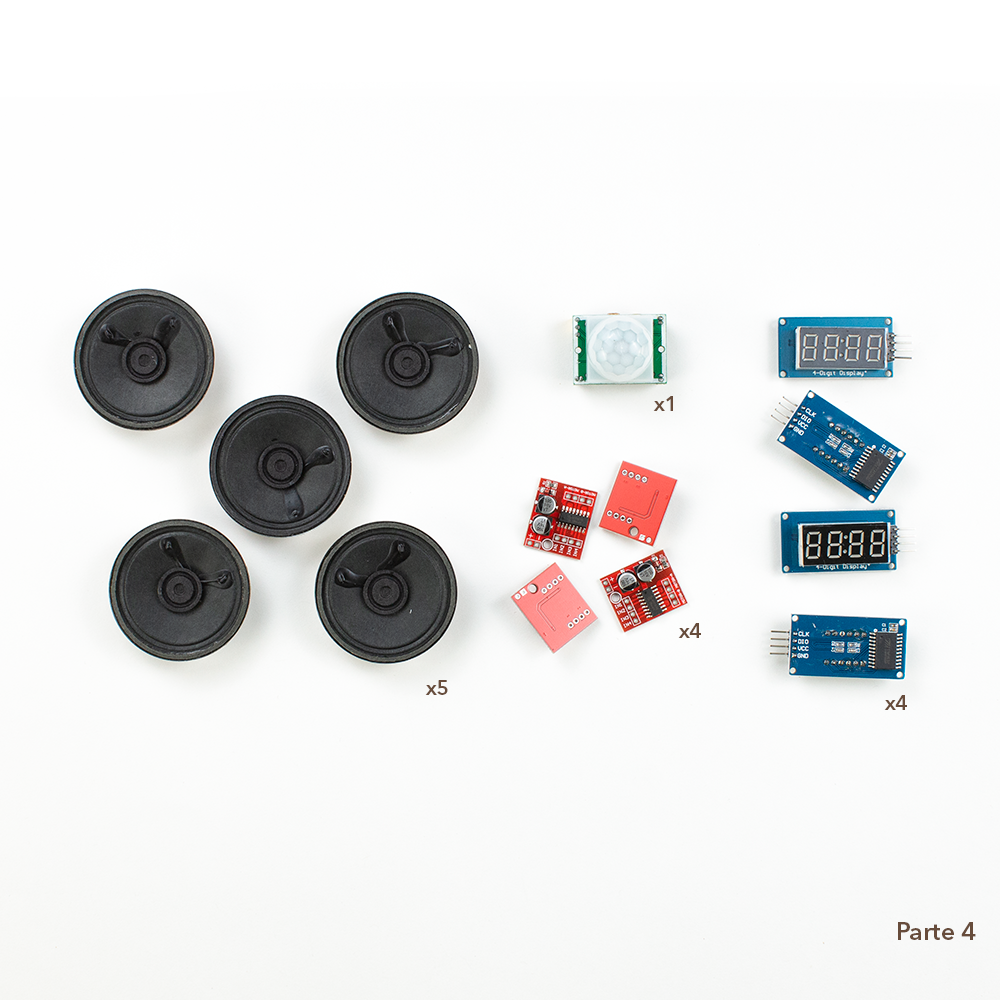Piezas incluidas en el Kit de Componentes y Circuitos Electrónicos Hacedores® Makerspaces: