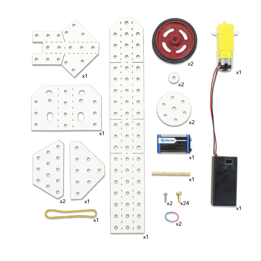 Piezas incluidas en el kit Maker-STEAM de construcción Robolution® Moto: