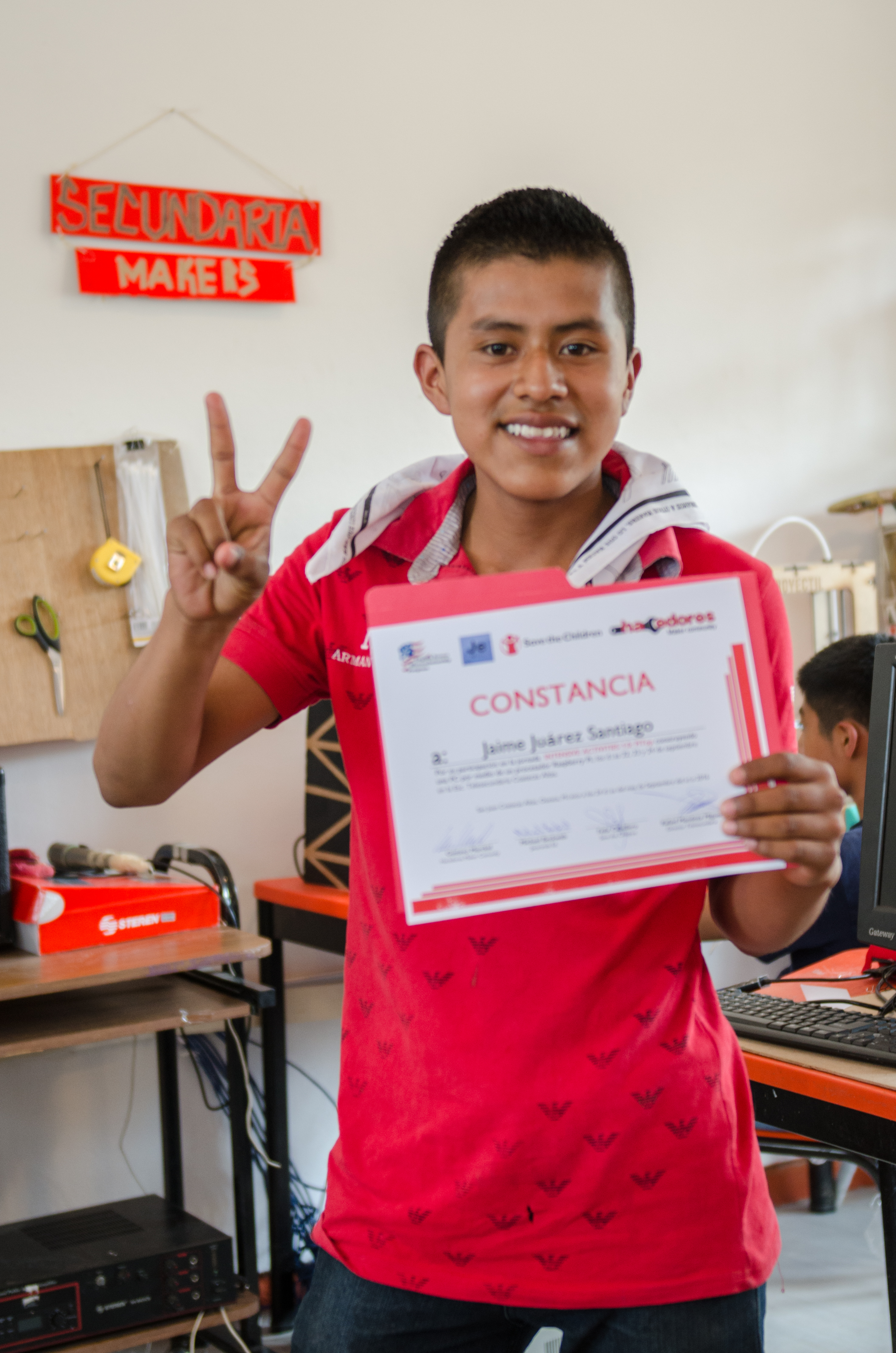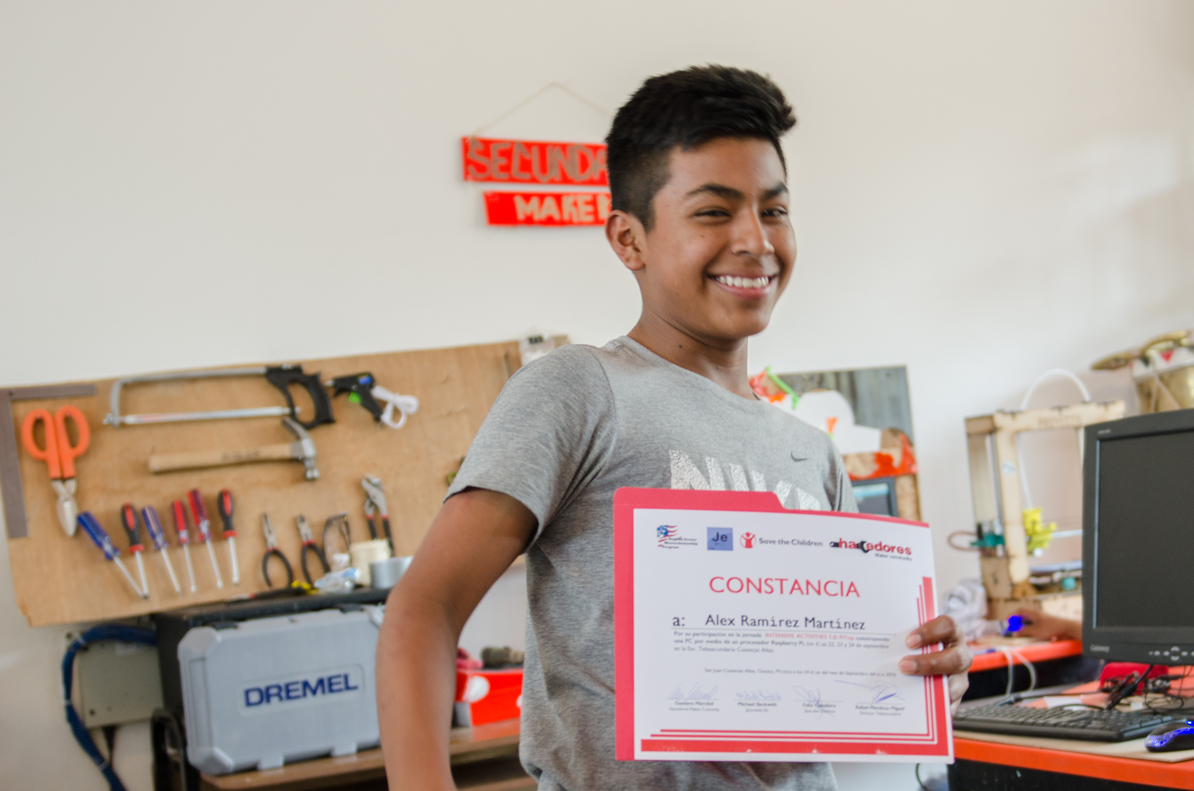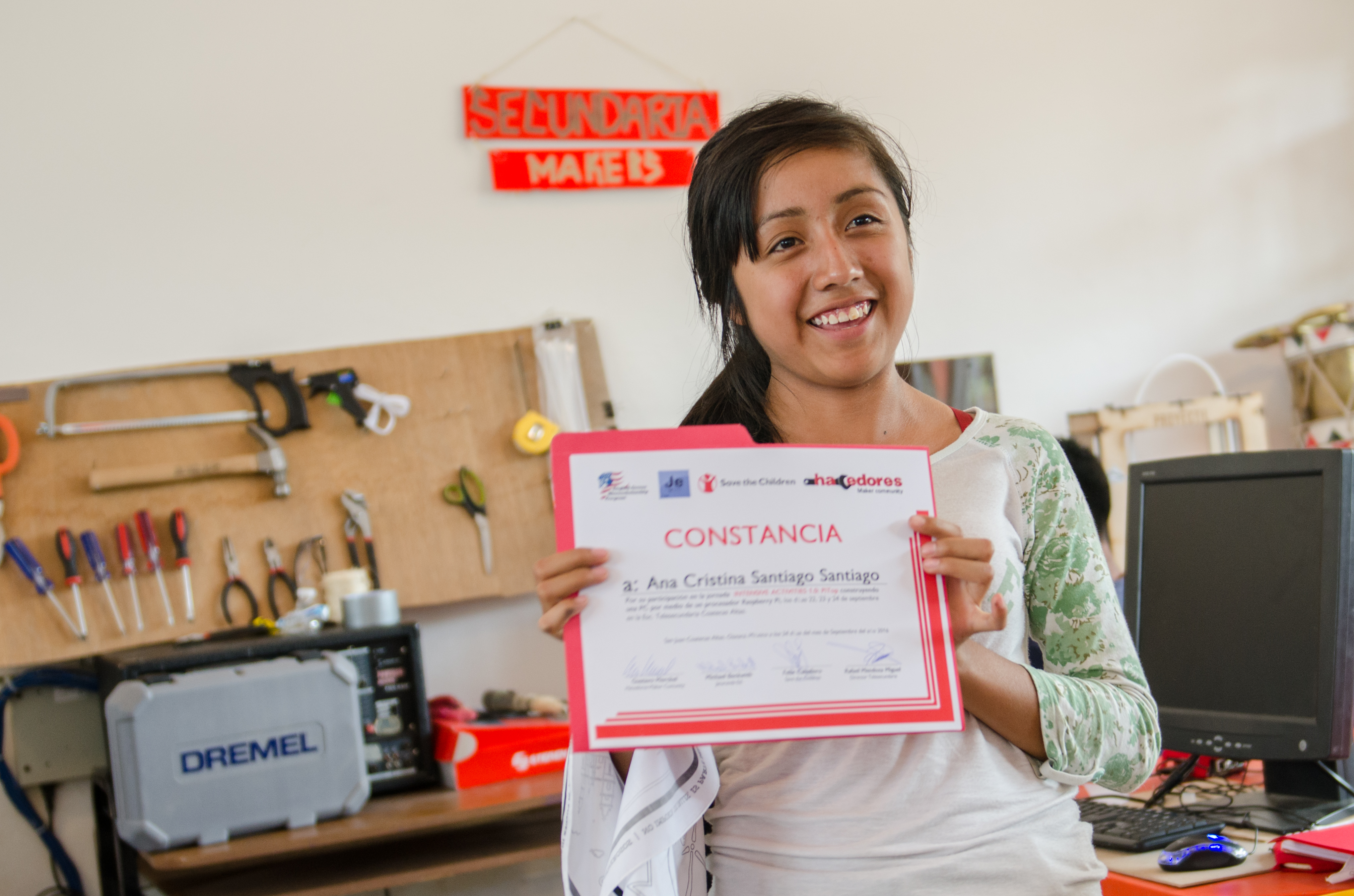El trabajo de Hacedores en la comunidad comenzó hace ya 6 meses, con la parte de educación tecnológica para alumnos de la Telesecundaria, en el marco del programa English Access Microscholarship Program (https://exchanges.state.gov/non-us/program/english-access-microscholarship-program), que da la oportunidad a jóvenes de escasos recursos de aprender inglés y tecnología. Durante los primeros meses, los chicos aprendieron nociones básicas de Design Thinking, desarrollo de prototipos y mecánica básica.